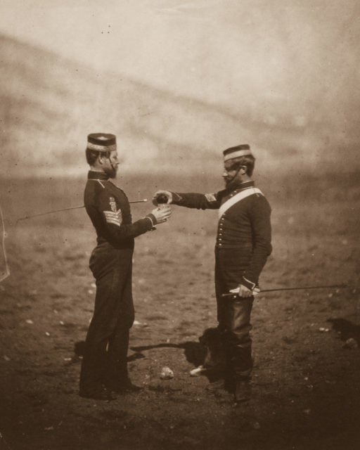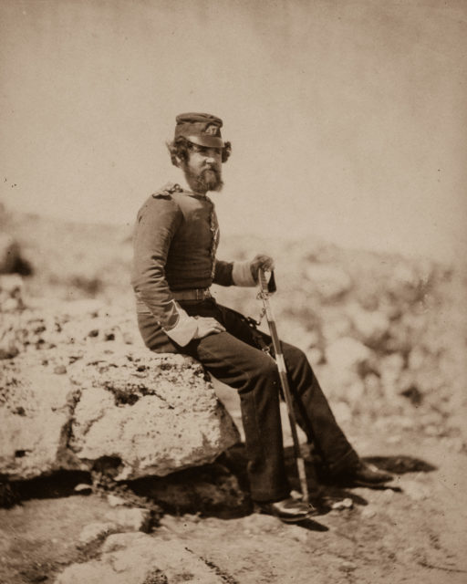 Early photographers had to deal with long exposure times—often as long as three or four minutes—which is why most subjects didn’t smile for pictures. Because of this disadvantage, Fenton was limited as to what he could photograph. He could not take action shots, as the subject had to remain still for the duration of the exposure, and Fenton did not believe in taking pictures of dead bodies. He therefore concentrated on posed shots and on landscapes. His work is admired today for his keen artistic eye, and how he managed to convey the reality of war even though he did not photograph men in battles.