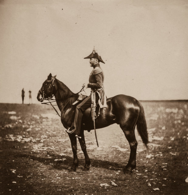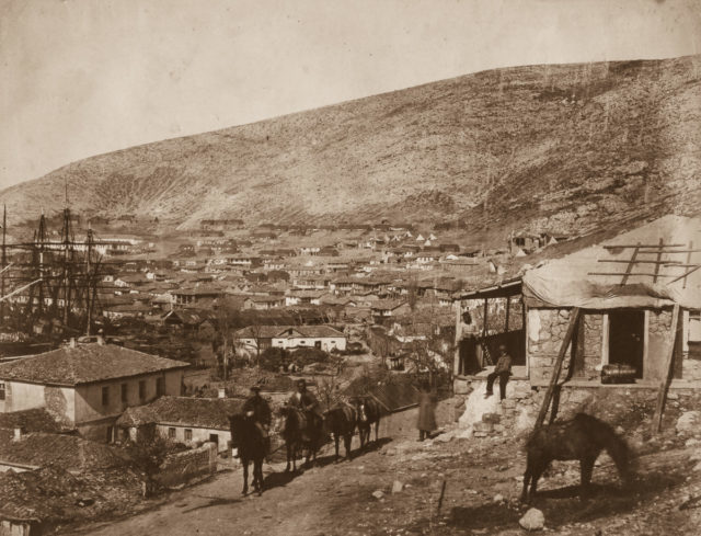 In autumn of 1854, Prince Albert and Henry Pelham Fiennes Pelham-Clinton, Fifth Duke of Newcastle, Secretary of State for War, asked Fenton to go to Crimea to document the conflict. War had broken out in October 1853 between Russia and Britain, France, Turkey, and Sardinia over Russia’s expansion into what is now Romania. Originally, the conflict had started between Turkey and Russia, but fear of Russian expansion into British-ruled India compelled Great Britain to become involved, with help from France. The main focus of fighting was on the Crimean Peninsula and the Black Sea, but particularly the Russian naval base at Sevastopol, the capture of which would hinder Russia’s naval power in the Black Sea.