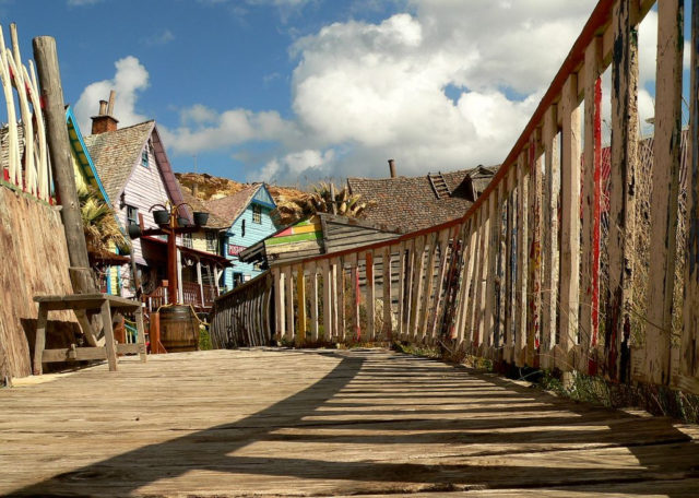 In order to recreate the fictional village of Sweethaven, the construction started in June 1979 and lasted for seven months. To protect the set from high waves crashing into the coastline, a big breakwater was built in Anchor Bay. It took 165 international construction workers t build the village, which consists of nineteen quaint and colorful houses.