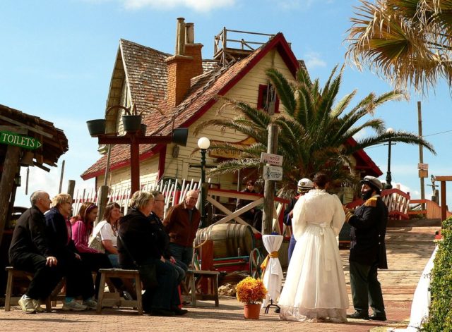 Visitors also come to the village to meet world famous cartoon figures. Characters from the show, such as Popeye, Olive Oyl, Bluto, and Wimpy are constantly walking around the village. Throughout the years, many shows are held in the village, but the most special event is the Wedding of Popeye and Olive.