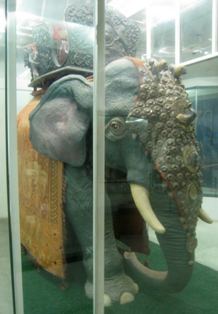 Examples of elephant armor can be seen in many museums across India, and these show the great care taken in their design. Some were encrusted with semi-precious stones and jewels, with colorful tassels hanging from the corners of the body armor. Many had golden threads woven into the cloth, and a few even had spikes protruding from the armor to cause even more injury to the enemy forces. They also had spiked leg cuffs to protect the animal from ax wielders attempting to injure the elephant’s legs. Some particularly beautiful examples of war elephant armor can be seen at the National Museum in New Delhi and the Leeds Royal Armouries Museum in Yorkshire, England.