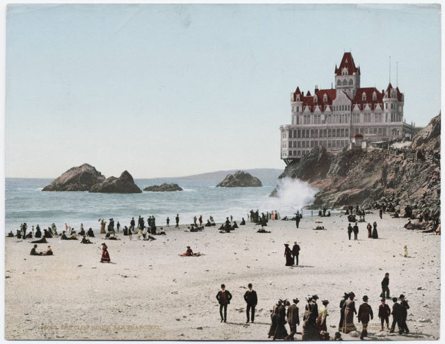 Sutro purchased some of the collection of stuffed animals, artwork, and historic items from Woodward’s Gardens to display at both the Cliff House and Sutro Baths.