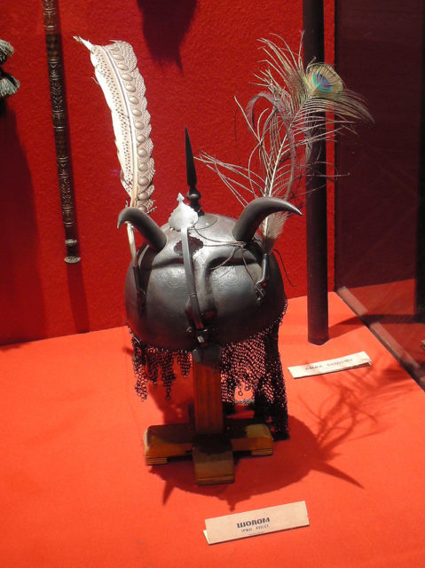 In pre-Meiji Restoration Japan, some Samurai armor incorporated a horned, plumed or crested helmet. These horns, used to identify military commanders on the battlefield, could be cast from metal, or made from genuine water buffalo horns.