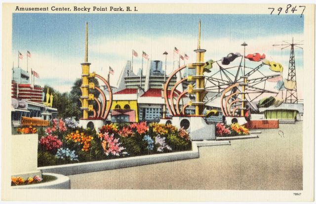 From the 1950s through the mid-1990s, Rocky Point Park was one of the most popular attractions in Rhode Island. There were a number or various roller coasters over the years. It’s most famous rides included a Russian Toboggan, Looff, Tumble-Bug, The Wildcat, Cyclone, The Saltwater Flume, the Corkscrew Loop Coaster and the Freefall, which fell 13 stories at 55 mph (89 km/h).