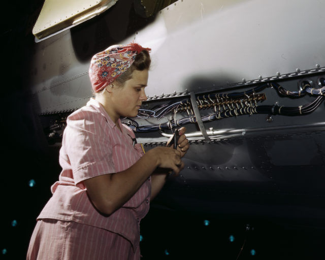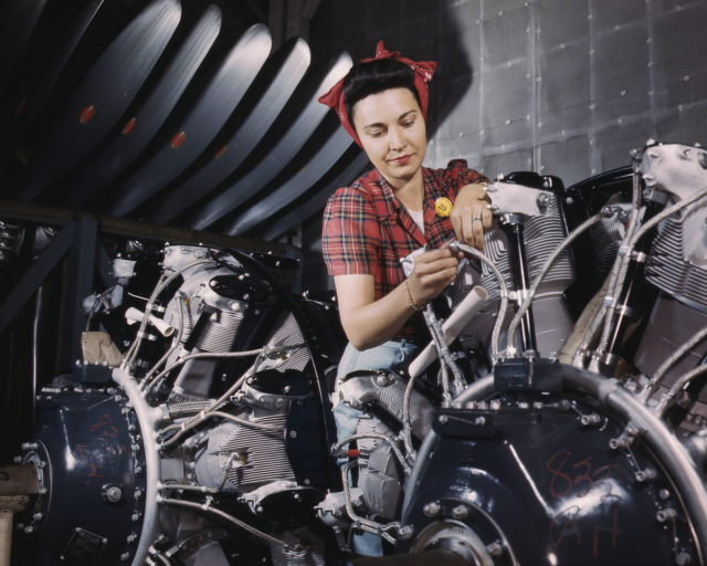 Legendary Rosie the Riveter is a well loved cultural icon of the USA and she represents the American women who went to ‘war’ work during WWII. The working men had gone to war leaving a depleted work force. The machinery of war still needed to turn so the nation turned to its women to keep the war machine working. The vast majority of them had never stepped foot inside a factory, airfield or shipyard before.