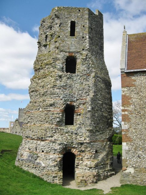 There is evidence of an Iron Age settlement there, and a Bronze Age mound was discovered beneath the castle church, St Mary in Castro. Next to the church is an 80 foot (24 meter) high pharos or lighthouse, which now serves as the bell tower of St Mary’s.