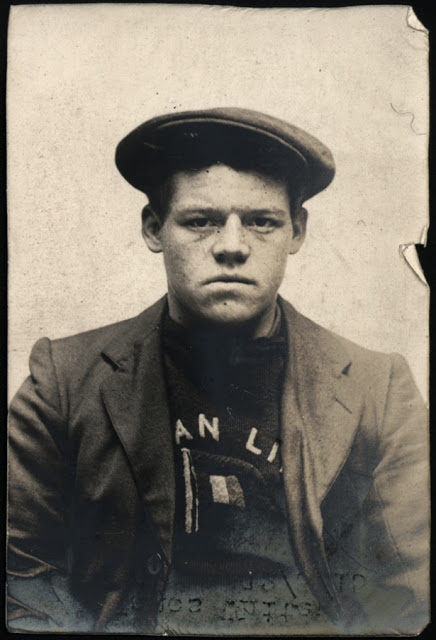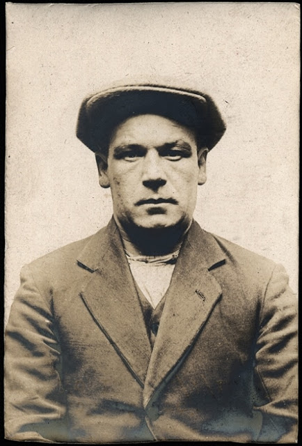 Here is a vintage full-face mugshot collection of 35 prisoner photographs in North Shields, England during the First World War, both men and women, arrested for stealing money, breaking and entering, assault or even stealing ducks.