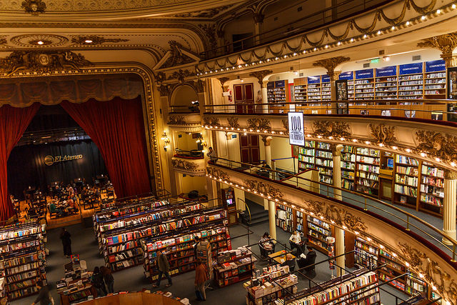 El Ateneo Grand Splendid is one of the most beautiful bookstores in South America, if not the world. Located in Buenos Aires, at 1860 Santa Fe Avenue in Barrio Norte, the building was designed by Pero and Torres Armengol. Originally it housed the theater Teatro Grand Splendid, and in the 1920s it was converted into a movie theater.