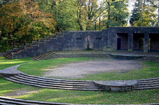 Many public facilities built in Nazi Germany were areas of communal activity, embodying the core ideas on which the party was based on. In 1933 the Nazi Propaganda Ministry under Joseph Goebbels began a movement based on the “Blut und Boden” (Blood and Soil) ideology – the so-called “Thing” movement. A Thing was an ancient Nordic/Germanic gathering of the people, in an outdoor setting. The Thing sites were to be built as much as possible in a natural setting, incorporating rocks, trees, water bodies, ruins, and hills of some historical or mythical significance.