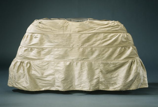 As some fashion historians have pointed out, the creation of the pannier was not a novelty, following as it did the 16th-century Spanish farthingale. That was a hooped petticoat or circular pad of fabric around the hips, worn under women’s skirts to extend and shape them.