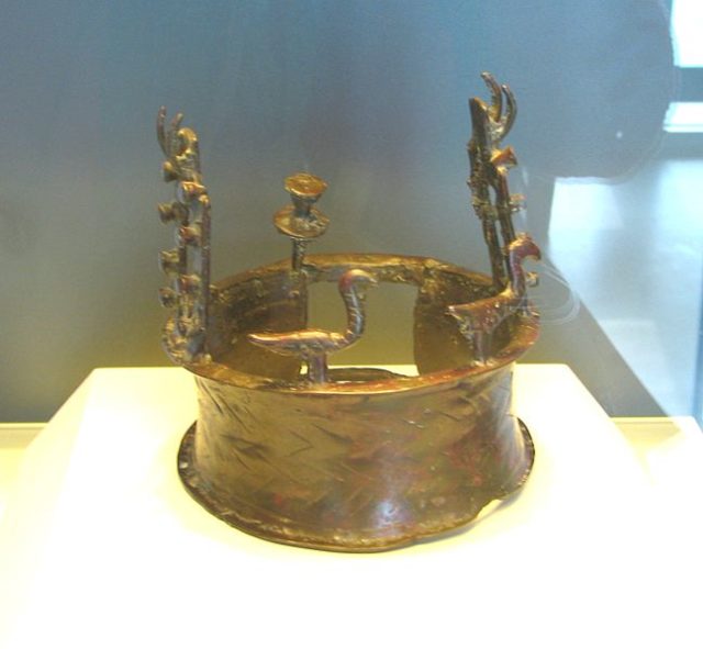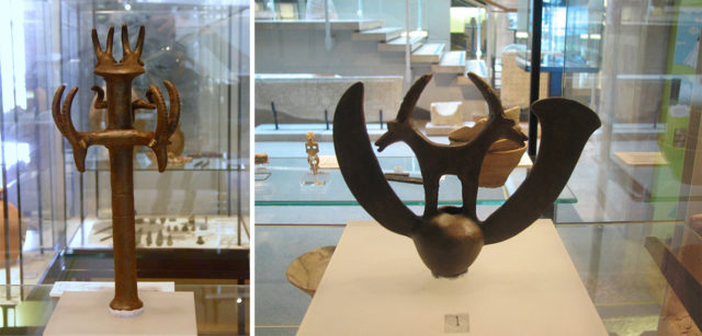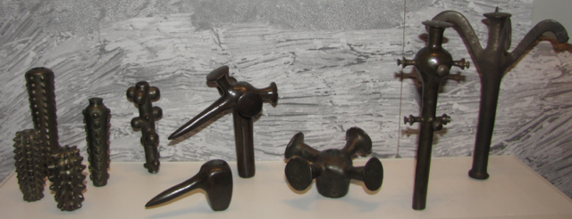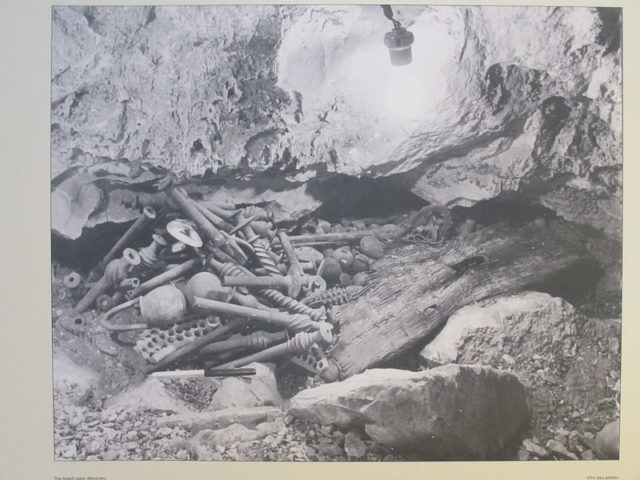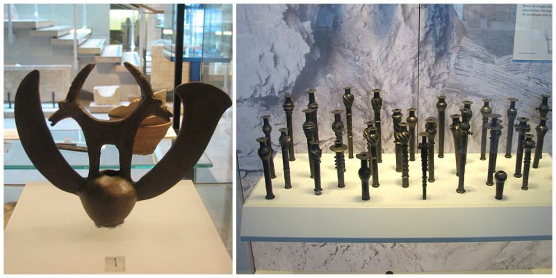 Hidden in a natural crevice, covered by a large rock, and wrapped in a straw mat, the archeologists found the most extraordinary and unique collection of copper, bronze, stone and ivory artifacts. The hoard included 432 copper, bronze, ivory and stone decorated objects – 240 mace heads, about 100 scepters, 5 crowns, powder horns, tools and weapons.