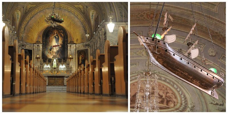 Montreal’s oldest chapel, known as “Sailors Church“, where small model ships hung from the ceiling, offered by sailors in gratitude