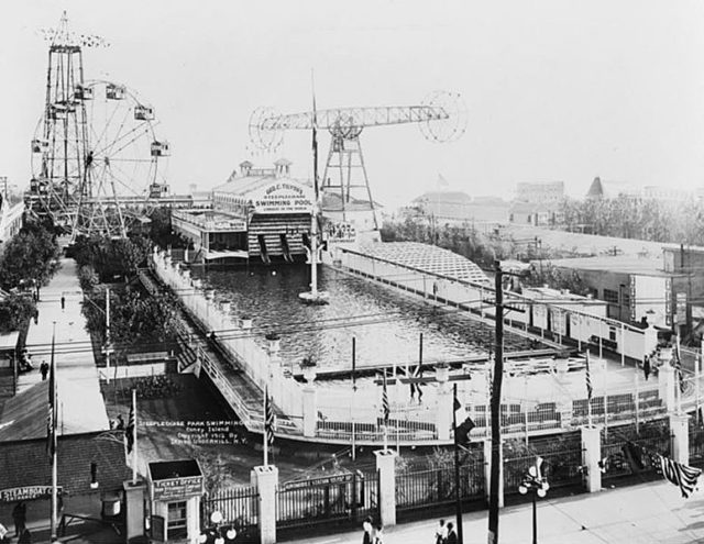 Steeplechase Park was an amusement park in the Coney Island area of Brooklyn, New York created by a Coney Island resident George C. Tilyou (1862–1914) which operated from 1897 to 1964. George C. Tilyou was inspired by the Hugh Ferris’ famous wheel at the 1893 Columbian Exposition in Chicago. He decided to build his own on Coney Island, and one year later, in 1894, George Tilyou erected Coney’s first Ferris Wheel.