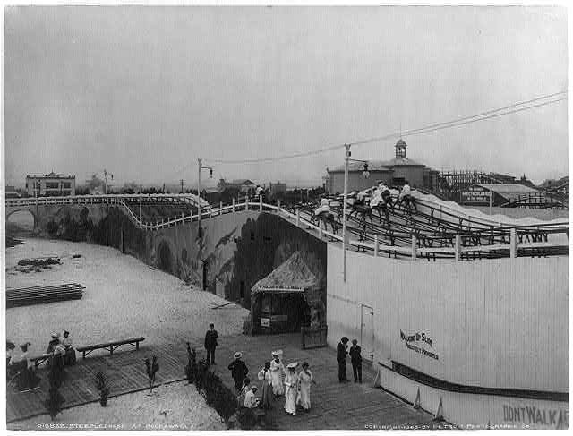 When the park opened, the main attraction was the simulated Steeplechase Horses. It featured an 1100-foot curved metal racetrack with double-saddled wooden horses on wheels and it operated using only gravity. Attendants were dressed as jockeys and buglers and he added realistic touches such as hurdles and a streambed. Steeplechase kept itself financially profitable because the Tilyou family were able to adapt the park to the changing times, bringing in new rides and new amusements.