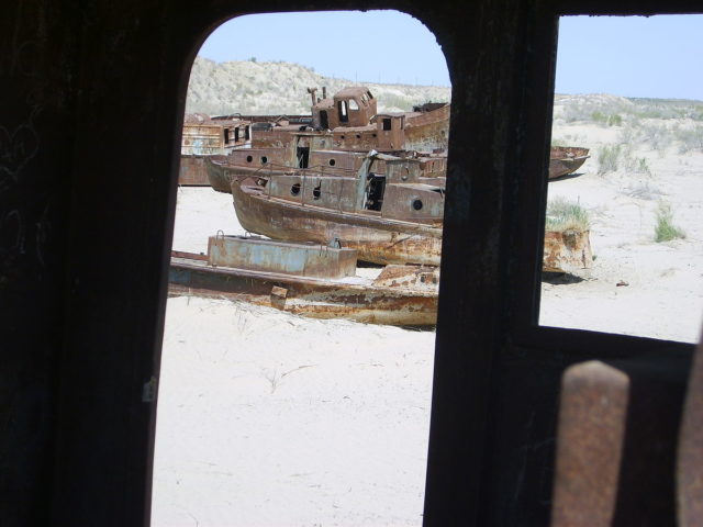 Mo‘ynoq also spelled as Muynak and Moynaq, was once a thriving sea port city on the Aral Sea in western Uzbekistan, now home to only a few thousand residents at most. Its population has been declining precipitously since the 1980s due to the recession of the Aral Sea and Mo’ynoq harbor has turned into a graveyard of ships.