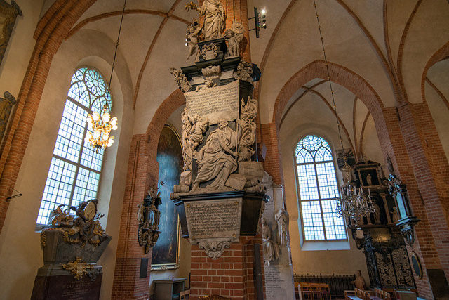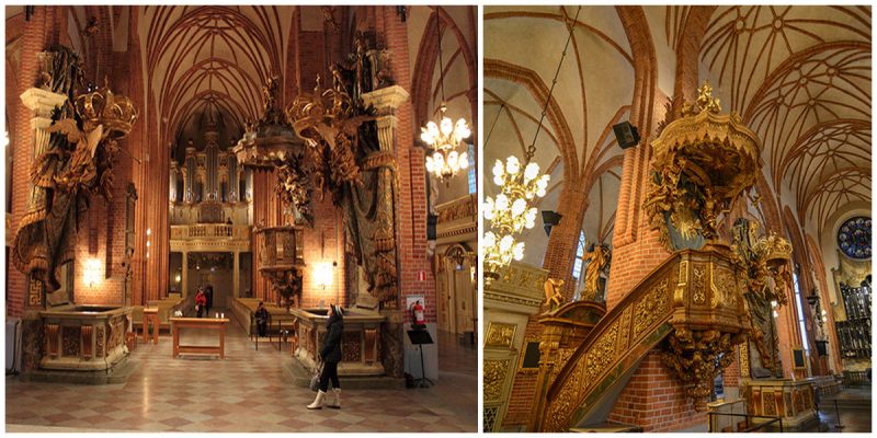 The exterior and interior of the church are a mix of Gothic, Baroque, and Medieval styles, reflecting the expansion of the church since the 1200’s. It has been expanded and renovated many times but has been around for about as long as Stockholm, being first mentioned in texts in 1279 (the city was first mentioned in 1252) and according to tradition was originally built by Birger Jarl, the founder of the city itself.
