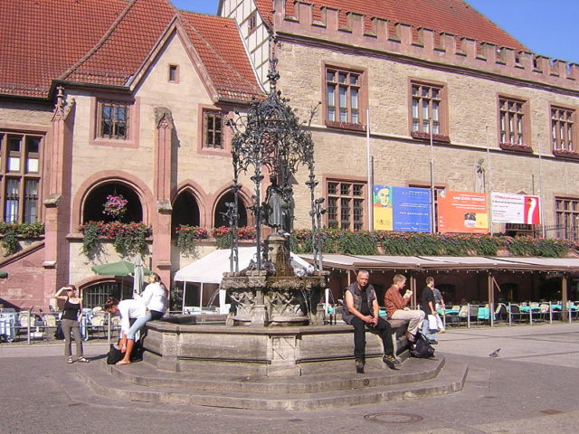 This statue of a young girl carrying three geese in her arms was designed by the architect Heinrich Stöckhardt and created by the sculptor Paul Nisse. Soon after the fountain was erected in 1901, a tradition developed. All newly enrolled students of the Georgia Augusta University began to climb up the fountain and to kiss the statue for good luck.
