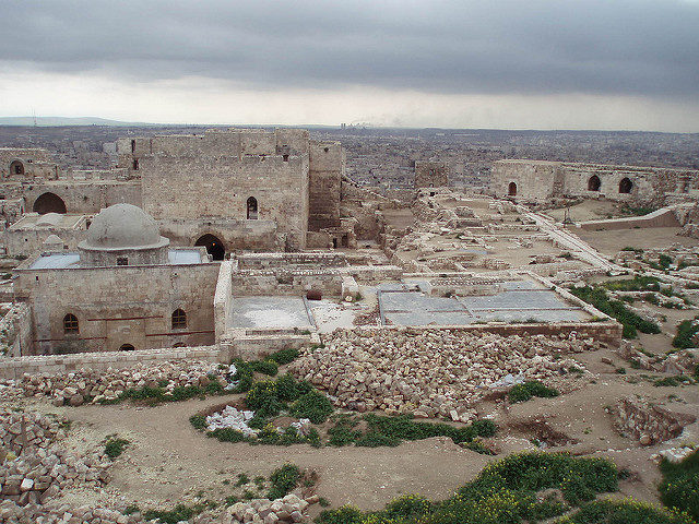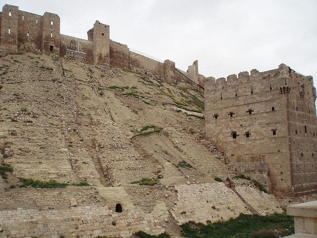 The Citadel of Aleppo is a large medieval fortified palace in the center of the old city of Aleppo, northern Syria. It is the most famous historic architectural site in Syria built on top of a huge, partially artificial mound rising 50m above the city and surrounded by a trench. It is considered to be one of the oldest and largest castles in the world. It’s a densely layered microcosm of a long and complex history.