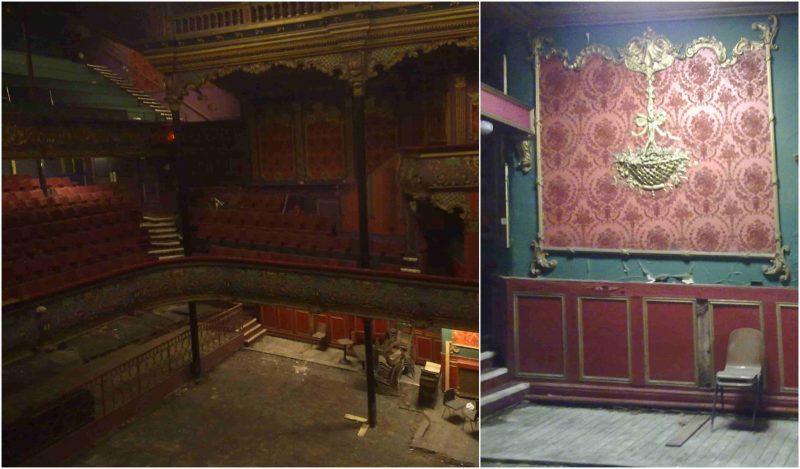 The theater now makes the grim picture of a slowly decaying corpse; most of its 3,000 seats stay arranged mostly unscathed, while an array of colorful décor that once mesmerized the audience has clearly taken the toll and is being eaten away slowly. On the upper floor, one can still find bottles left behind in the bars along with the broken cameras and some spooky old television sets, all in a stark contrast from the condition of the building downstairs that stands in absolute ruins.