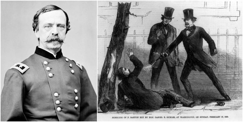 Teresa had been carrying out an affair with his close friend Philip Barton Key II, a prominent district attorney and the son of “The Star-Spangled Banner” author Francis Scott Key. The tryst was one of the worst kept secrets in Washington — Key was even known to wave a handkerchief outside his window when he wanted Teresa’s company — but Sickles remained oblivious until he received an anonymous letter that spelled out all the lurid details. The revelations sent him into a rage. A few days later, as multiple witnesses looked on, he approached Key outside the White House and shot him to death.