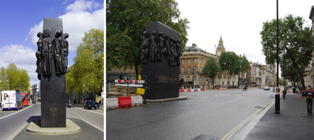 This big, black, block-made of bronze, 22 feet high, 16 feet long and 6 feet wide was sculpted by John W. Mills. It was unveiled by Queen Elizabeth II as a part of the events celebrating the 60th anniversary of the end of the Second World War and it was dedicated by Baroness Boothroyd in July 2005.