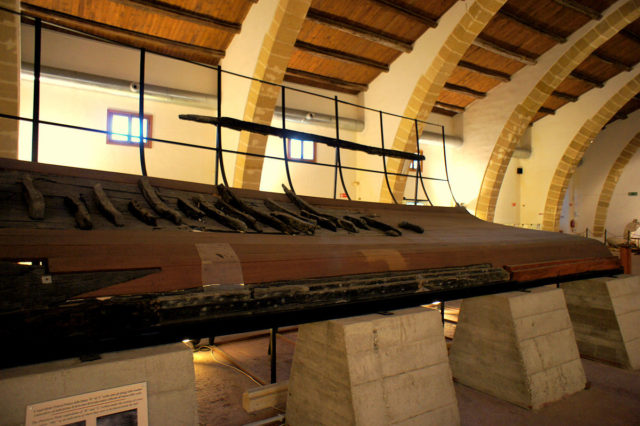 The Marsala Ship was discovered in an area called Punta Scario in the harbor of Marsala in western Sicily, Italy, near the Aegadian Islands. It was in 1969 that a captain of a commercial dredge digging sand for making glass discovered buried wood from ancient vessels in the area. Two years later the movement of a sandbank exposed the “Punic Ship’s” stern post with projecting timber. This endangered the shipwreck, threatening the loss of the potential historical value of the information it revealed about the Phoenicians. Rescue excavation began in earnest and continued for the next four years. Photos by Sarah Murray/Flickr/CC BY-SA 2.0