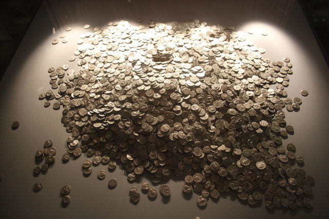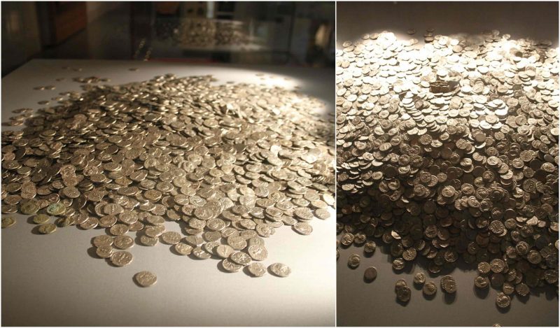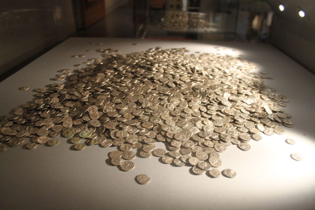 Notable inclusions in the hoard were 260 coins from the time of Mark Antony (31–30 BC), with over half the coins minted during the reign of Septimius Severus (193–211). There were also two rare coins never discovered in Britain before which depicted Manlia Scantilla, the wife of Didius Julianus, an emperor who was murdered four weeks after the coins were struck. Non-Roman coins included were three Lycian drachmae and one drachma from Caesarea in Cappadocia. The latest coin struck was in 224 AD, and it is estimated that the hoard as a whole represented ten years’ pay for a Roman legionary.