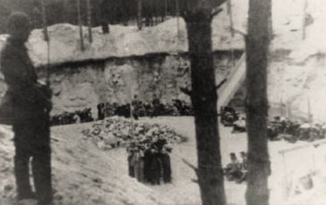 After the Nazis had occupied the region, dozens of death squads were quickly formed and sent to gather up Jewish civilians. They were then taken six miles south of the city; the prisoners were forced to dig massive pits, which became their graves as they were gunned down in cold blood.