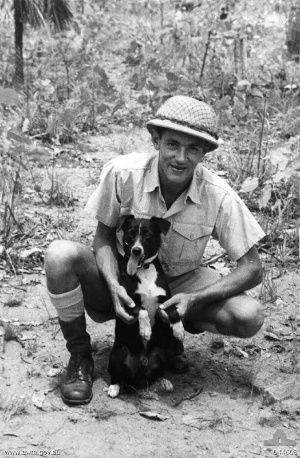 Under a destroyed mess hall, they found the smallest survivor of them all, a six-month-old male stray kelpie (an Australian sheep dog). He had a broken leg and was whimpering. Eventually, the injured pup ended up in the hands of Leading Aircraftman Percy Westcott.