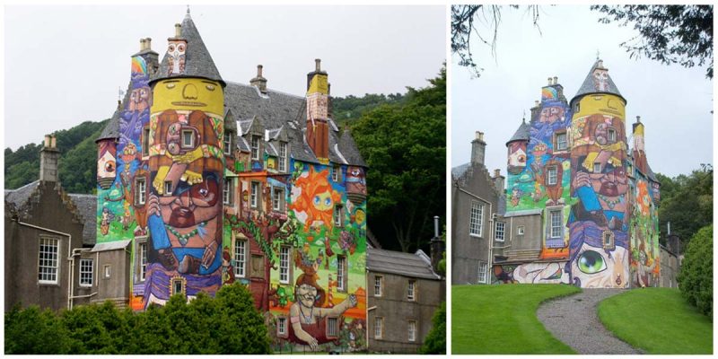 In 2007, the 10th and current Earl of Glasgow, Patrick Robin Archibald Boyle, was told that he needed to remove a cement render that had been added to the building in the 1950s, to avoid further damage to the stonework. At the suggestion of his children, Lord Glasgow invited four Brazilian graffiti artists to paint the large section of the castle that will eventually be replaced.