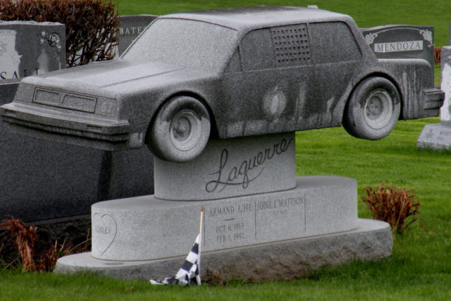 Many unusual monuments can be found here, such as a bas-relief of a soldier smoking a cigarette, a half-size replica of a race car, bored Angel, bas-relief of an 18-wheel truck and more. Also, hobbies of the dead are remembered, with a soccer ball, a relief of an older man on a motorcycle, a baseball player.