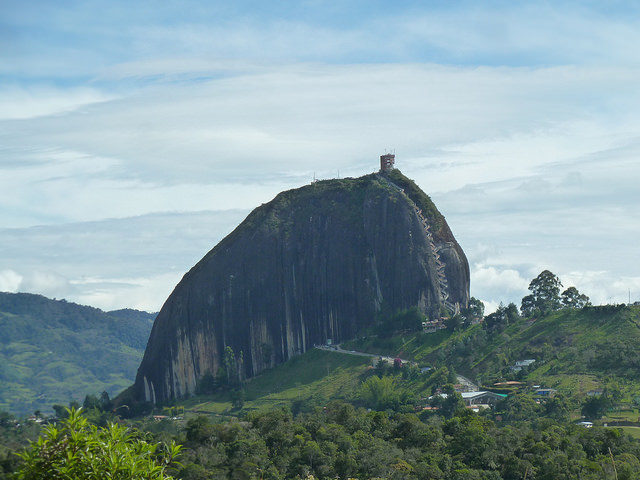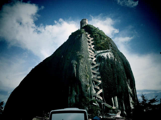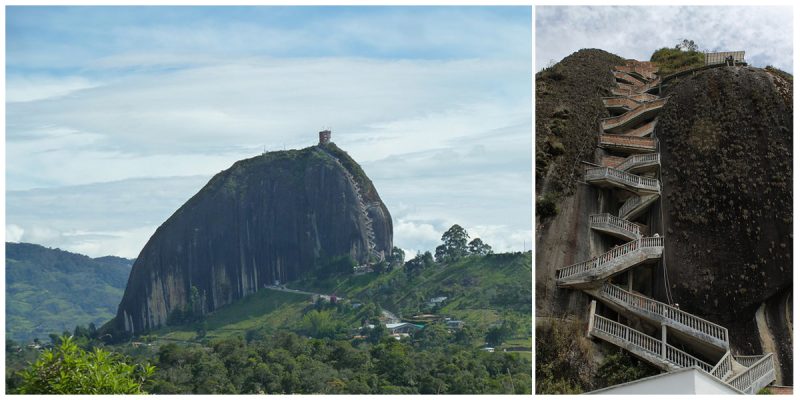 La Piedra Del Peñol, also known as El Peñol Stone, is a gigantic monolithic formation rising over 650 feet from the flat ground of Guatape, Colombia and it is the town’s main attraction.