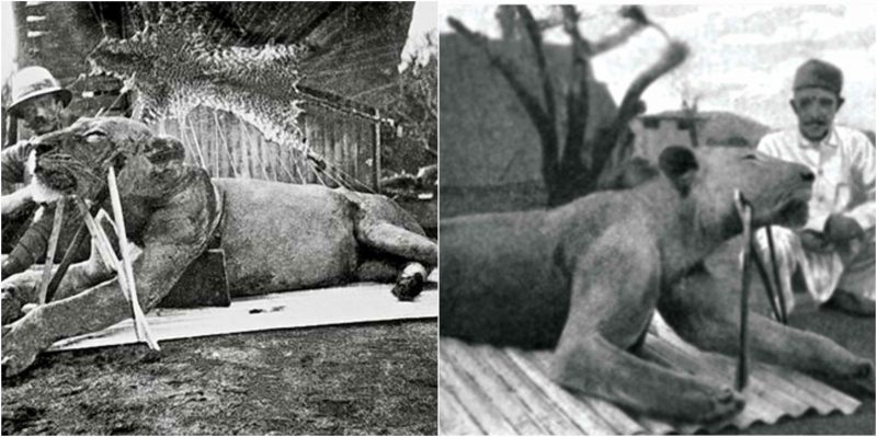 After 25 years as Patterson’s floor rugs, the lions’ skins were sold to the Chicago Field Museum in 1924 for a sum of $5,000. The lions’ skins arrived at the museum in very poor condition.