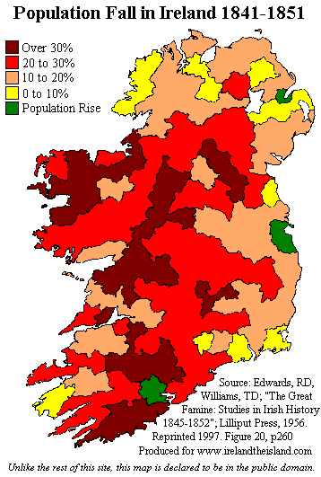 One possible estimate has been reached by comparing the expected population with the eventual numbers in the 1850s. A census taken in 1841 recorded a population of 8,175,124. A census immediately after the famine in 1851 counted 6,552,385, a drop of over 1.5 million in 10 years. In 1851, the census commissioners collected information on the number who died in each family since 1841, and the cause, season, and year of death. They recorded 21,770 total deaths from starvation in the previous decade, and 400,720 deaths from a disease. Listed diseases were fever, dysentery, cholera, smallpox, and influenza, with the first two being the leading killers (222,021 and 93,232). On the other hand, the population of England and Wales doubled from 16 million in 1841 to 32.5 million in 1901.