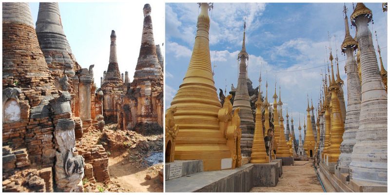 On the western bank of Inle Lake, in the middle of Myanmar’s jungles, lies an impressive series of sightseeing objectives with a unique combination of history, complex architecture, and nature. A typical visit to Inle Lake involves visiting the villages around the lake and the floating market. There is a small village which is called Inthein. In the village, there are hundreds of ancient pagodas of many shapes and sizes and in various states of ruin.