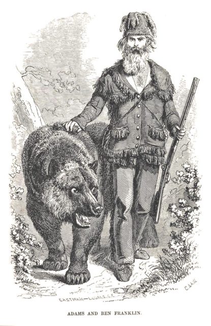 Adams lived the life of a mountain man for three years, until 1856, when he relocated to San Francisco after being offered a chance to make money by putting on shows with his animals. While running this enterprise he adapted to city life again, and he and his ‘Mountaineer Museum’ became so popular that the newspapers began to take notice. One newspaper writer, in particular, Theodore Hittell, wrote an impressive series of articles about Adams and his animals, bringing them even greater popularity.