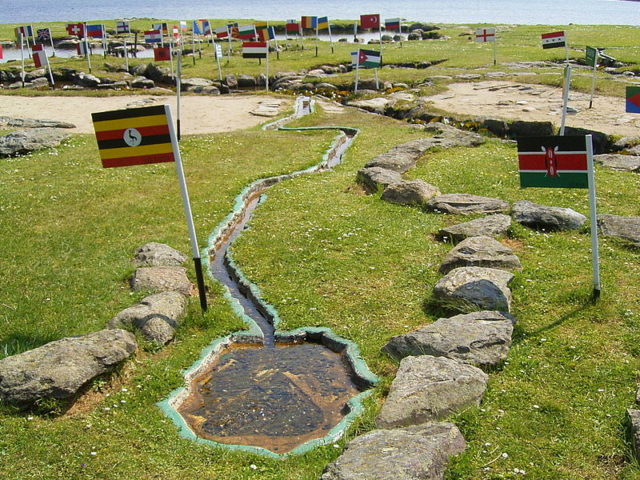 The World Map at Lake Klejtrup is a miniature 5,000-square-meter world map, built of soil, stones, and grass. It is located near the village of Klejtrup, Viborg Municipality, Denmark. Søren Poulsen, the creator of the World Map was born in Denmark in 1888. Having spent part of his life in America, he returned to the village where he was born, by the lake in Klejtrup.