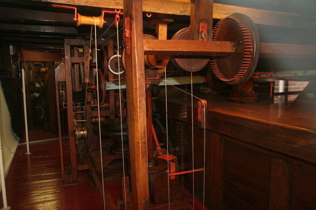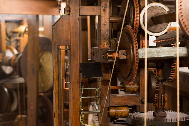 To create the gears for the model, 10,000 handmade nails were used. In addition to the basic orrery, there are displays of the phase of the moon and other astronomical phenomena. A pendulum clock and a series of intricate mechanical gears drive the planets at the precise rate they do in our solar system.