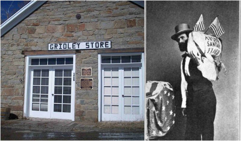 In 1864, Gridley supported the Democratic candidate for mayor in Austin, Nevada, where he operated a grocery store. He made a bet with a Republican friend that the loser would carry a fifty-pound sack of flour through the town. He performed his punishment with the accompaniment of the town band, and at the end, someone offered that the sack should be auctioned off to raise money for the Sanitary Fund, a new organization that aided disabled Civil War veterans. After finally selling for $250, the winning bidder did not take the sack but instead donated it back to Gridley to be auctioned off again. It was repeatedly sold until over $8,000 was raised. When nearby Virginia City, Nevada heard of the event (and where young newspaper editor Mark Twain was working at the time), they invited Gridley to come there, which he did. He then traveled to California where San Franciscans donated $2,800, and Sacramento citizens gave $10,000, before heading to St. Louis and the major eastern cities. These bidders added around $170,000 to the Sanitary Commission’s fund, and within twelve months Gridley had raised $275,000 with his sack of flour.