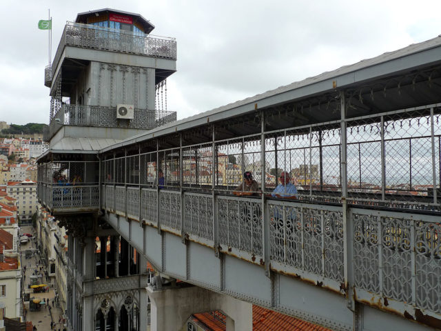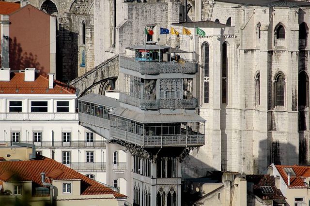 The Santa Justa Lift, also called Carmo Lift, is a historic outdoor elevator located in the civil parish of Santa Justa, in the capital city of Lisbon, in Portugal. Situated at the end of Rua de Santa Justa, it connects the lower streets of the Baixa with the higher Largo do Carmo (Carmo Square), and has been providing an invaluable service to the commuters by eliminating the slog up Carmo Hill.