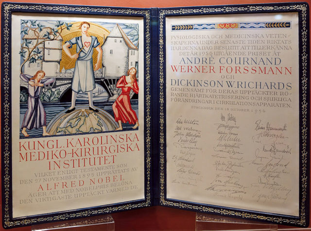 During the time of his imprisonment, his paper was read by André Frédéric Cournand and Dickinson W. Richards. They developed ways of applying his technique to heart disease diagnosis and research. In 1954, he was given the Leibniz Medal of the German Academy of Sciences. In 1956, the Nobel Prize in Physiology or Medicine was awarded to Cournand, Richards, and Forssmann.