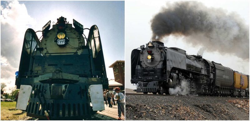 Locomotive No. 844 moves the Big Boy, locomotive No. 4014, to the platform in Cheyenne, Wyoming, in planning for the huge restoration task. Currently, No. 4014’s tender car is fashioned to transfer coal. The steam teams thoughts are to alter it to transfer oil.