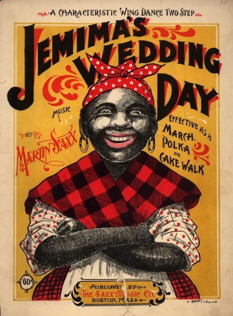 From this point on, marketing materials for the line of products centered around the stereotypical mammy archetype, including the Aunt Jemima marketing slogan first used at the World Fair: “I’s in Town, Honey”.
