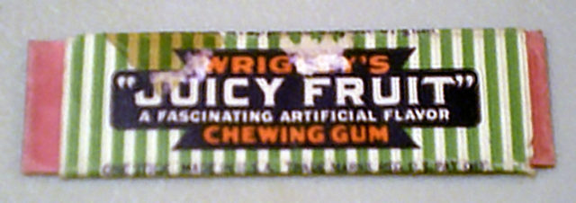 Juicy Fruit is a flavor of chewing gum made by the Wrigley Company, a U.S. company that since 2008 has been a subsidiary of the privately-held Mars Incorporated. It was introduced in 1893 at the World’s Columbian Exposition in Chicago, and in the 21st century, the brand name is recognized by 99 percent of Americans, with total sales in 2002 of 153 million units.