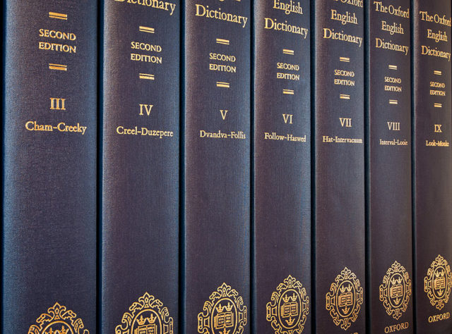 It was probably through his correspondence with the London booksellers that he heard the call for volunteers from what was to become the Oxford English Dictionary (OED). He devoted most of the remainder of his life to that work. He became one of the project’s most effective volunteers, reading through his large personal library of antiquarian books and compiling quotations that illustrated the way particular words were used. He was often visited by the widow of the man he had killed, and she provided him with further books.