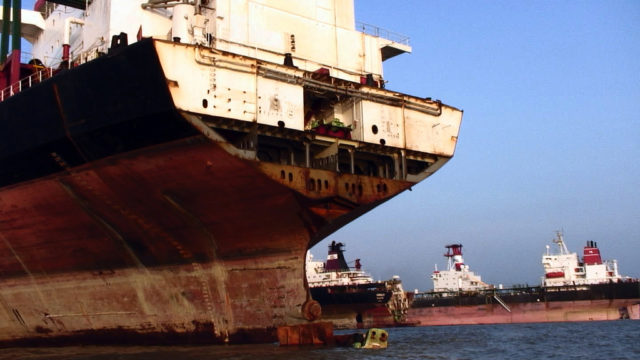 Heavy physical labour is necessary as the workers lack the proper machinery. Workers rip apart ships with their bare hands and a blowtorch to assist, dissecting the ship, bolt by bolt, rivet by rivet.