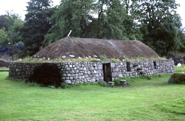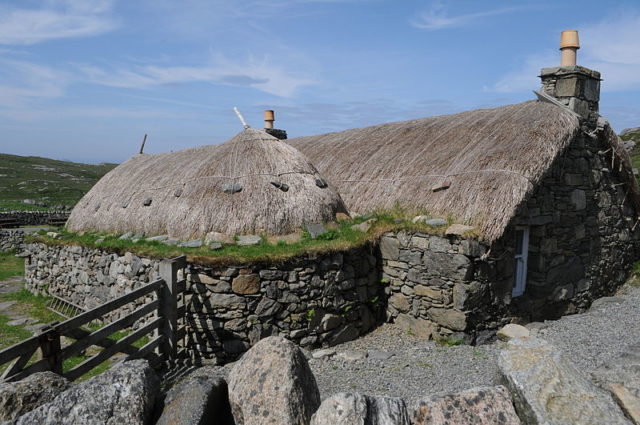 A traditional type of house which used to be common in the Scottish Highlands, the Hebrides, and Ireland. Source