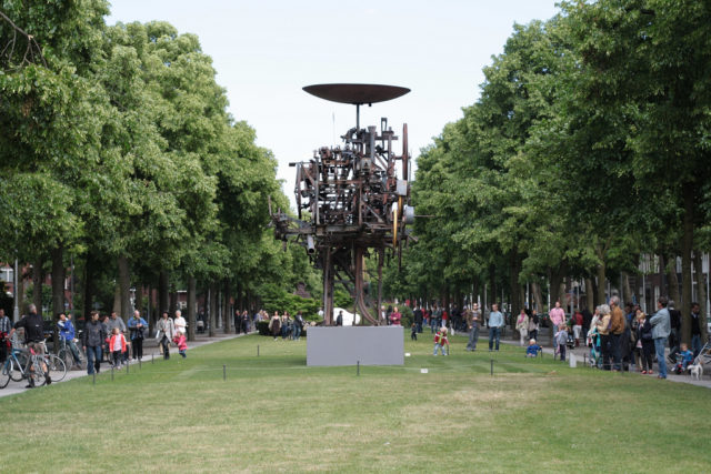 Heureka was commissioned as an exhibit at the Swiss State Exhibtion in Lausanne in 1964; later bought by an industrialist and donated to the city of Zurich. The sculpture is made from everyday objects like tubes, wheels, forks and other metal details assembled together to create an intricate machine when turned on — or rather, the illusion of one. At 5:00 pm every afternoon his machine comes alive and bursts into useless energy.