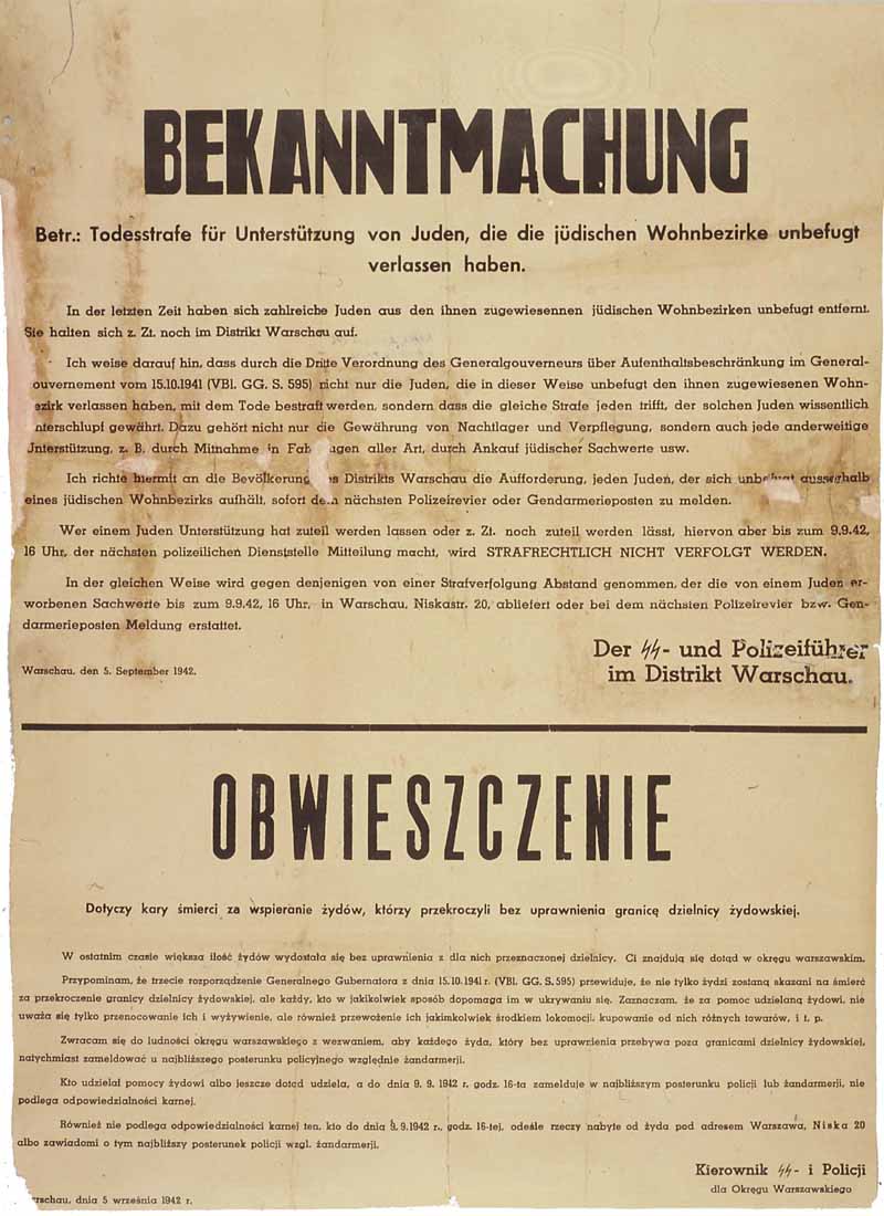 Everyone in Poland was warned that any attempt to help Jewish people would result in them being tortured and killed, together with the rest of their family.