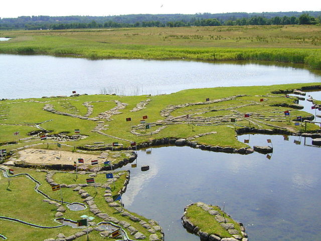 The World Map at Lake Klejtrup is a miniature 5,000-square-meter world map, built of soil, stones, and grass. It is located near the village of Klejtrup, Viborg Municipality, Denmark. Søren Poulsen, the creator of the World Map was born in Denmark in 1888. Having spent part of his life in America, he returned to the village where he was born, by the lake in Klejtrup.